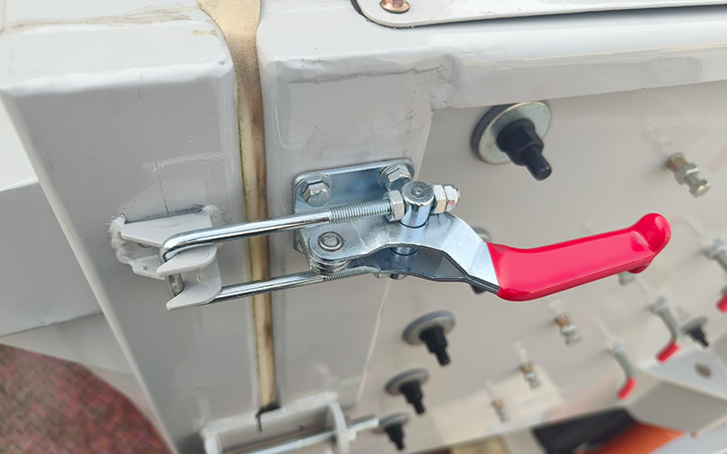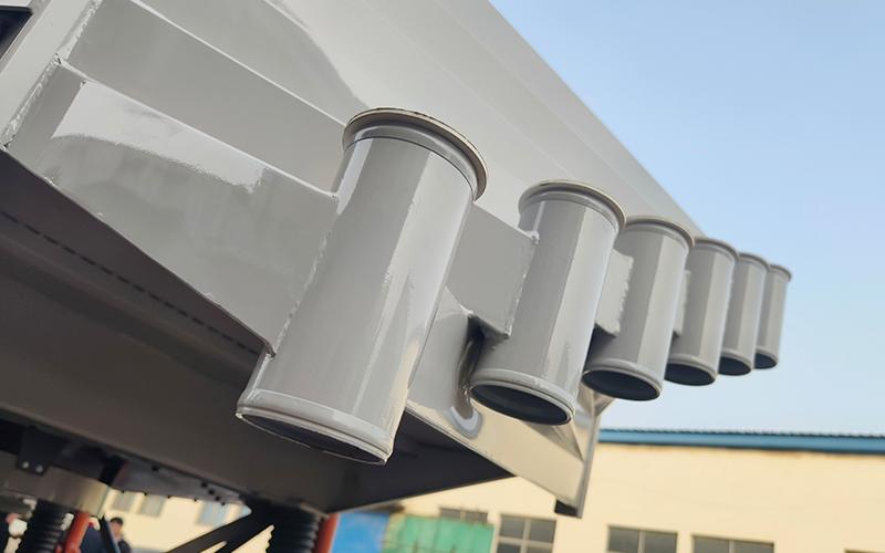 l 进料口:改变了原来依附在后门上的设计,增加了分料板结构,使分料更有效均匀.后门的重量减轻,让进料一端的摇摆运动更有力,使得投入筛面的物料更快速的分散筛分。