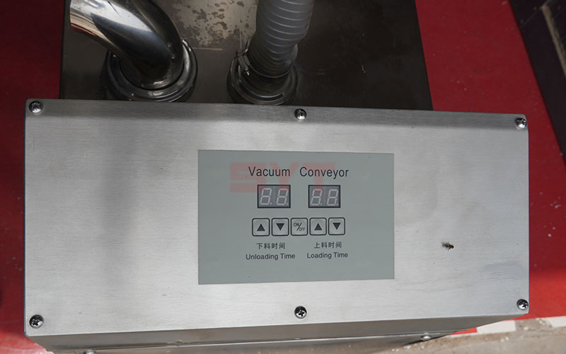 真空上料机是在广泛吸收国外同类产品的基础上研发的产品,是理想的粉状、颗粒状、粉粒料、混合料的真空输送设备。真空上料机能自动地将各种物料输送到包装机、注塑机、粉碎机等设备的料斗中,也能直接把需混合的物料输送到混合机(V型混合机、二维混合机、三维混合机)中,即减轻了工人的劳动强度,又解决了加料时的粉尘外溢问题,是药厂、食品厂通过GMP认证、促进清洁、文明生产的设备。真空上料机由高压风泵、不锈钢吸料嘴、输送软管、PE过滤器(或316不锈钢过滤器)、压缩空气反吹装置、气动放料门装置、真空料斗和料位自动控制装置等组成,整套系列设计合理,制造精美。真空上料机分间隙排料和连续排料两种。间隙排料有利于降低设备的投资成本,方便料位控制;连续排料一般用于长距离,大产量的对物料的真空输送。